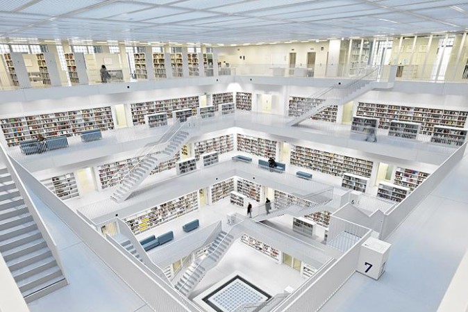 La Stadtbibliothek di Stuttgart: incredibile connubio di architettura e biblioteca! Oltre mezzo milione di volumi a disposizione del pubblico, in forma cartacea e multimediale!