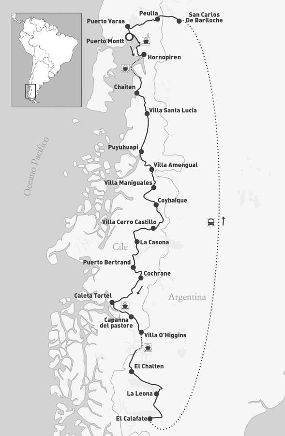 Alberto, giovane liceale, manifesta per la libertà del Cile. Quarant’anni dopo decide di scoprire a pedali la Patagonia cilena, territorio affascinante abitato da una natura selvaggia e spesso ostile, solcato da fiordi, vulcani, foreste impenetrabili abbarbicate all’aspra Cordigliera delle Ande, sconfinate distese di ghiacciai, e popolato di animali selvatici. Alberto monta in bicicletta in compagnia del figlio Fausto e del fidato amico Dino per attraversare questo territorio lungo la Carretera Austral, un must dell’on-the-road, in direzione di Ushuaia. 1240 chilometri verso il nulla faranno rotolare i tre protagonisti verso sud, sballottati come in una centrifuga dal ripio, il famigerato fondo sterrato.
