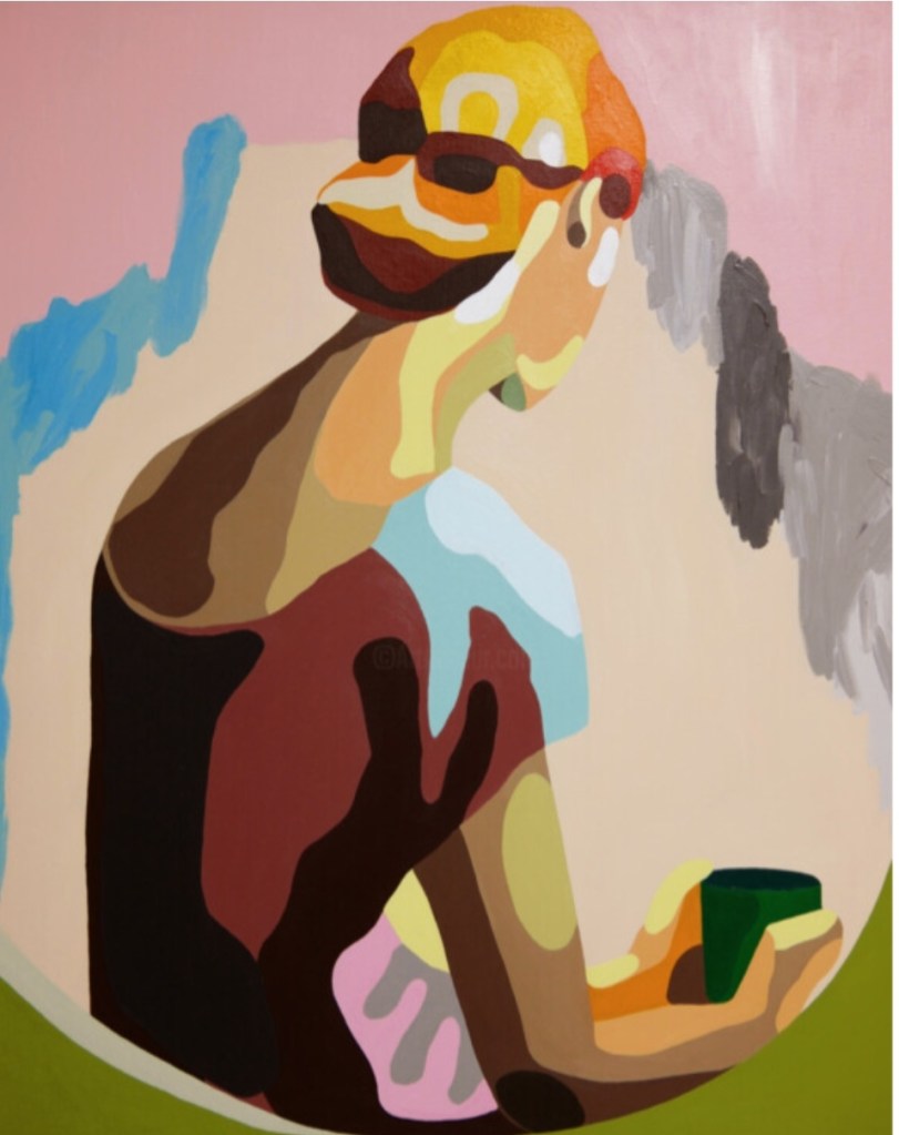 Prendiamo in esame, ad esempio, il dipinto “Honestly”. Il protagonista del quadro è stato catturato quasi involontariamente, all’interno di un chiaro momento di riflessione personale, in cui le sue mille idee parrebbero prendere la forma delle soffici sfumature cromatiche poste sul suo volto, che rimandano ad un affine capolavoro della storia dell’arte, in cui la pigmentazione della protagonista ha subito un processo, seppur più drastico, alquanto analogo, ovvero: Finlandaise (Finnish Woman) (1907-1908) di Sonia Delaunay-Terk.